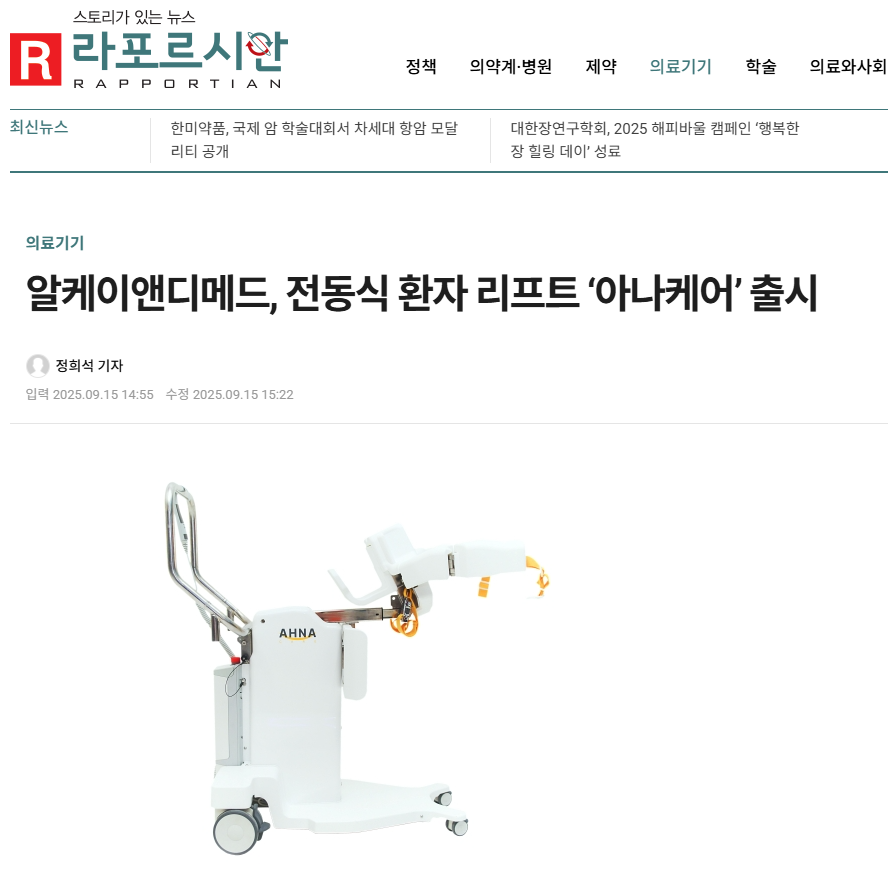 [기사] 라포르시안 _ 전동식 환자 리프트 '아나케어' 출시